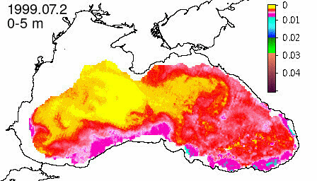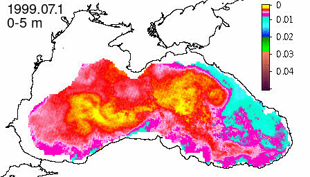 chlorophyll a concentration, mg m^-3