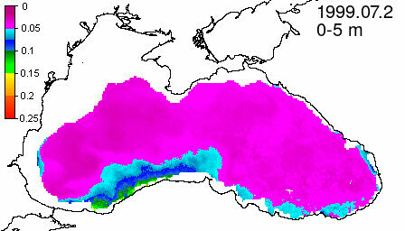 colored detrital matter absorption coefficient at 490 nm, m^-1