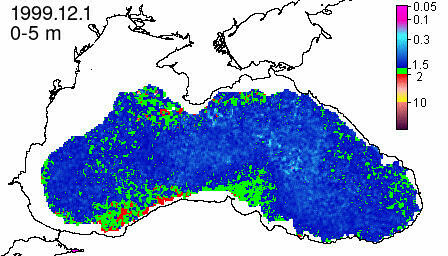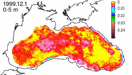 chlorophyll a concentration, mg m^-3