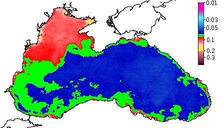 Colored Detrital Matter, aCDM(490),m^-1
