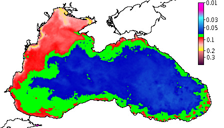 Colored Detrital Matter, aCDM(490),m^-1