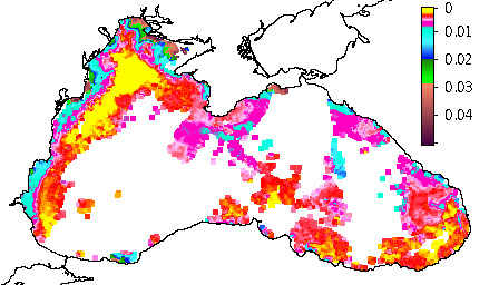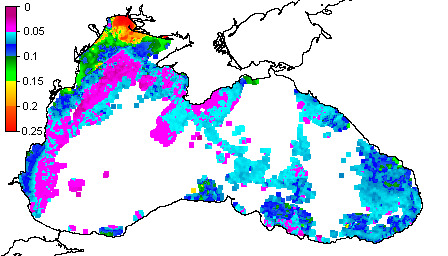 Colored Detrital Matter, aCDM(490),m^-1