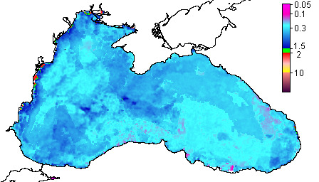 Colored Detrital Matter, aCDM(490),m^-1