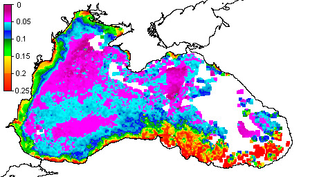 Colored Detrital Matter, aCDM(490),m^-1