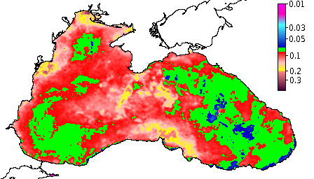 Colored Detrital Matter, aCDM(490),m^-1