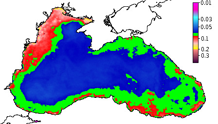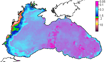 Colored Detrital Matter, aCDM(490),m^-1
