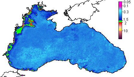 Colored Detrital Matter, aCDM(490),m^-1