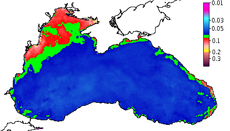 Colored Detrital Matter, aCDM(490),m^-1