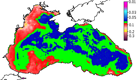 Colored Detrital Matter, aCDM(490),m^-1