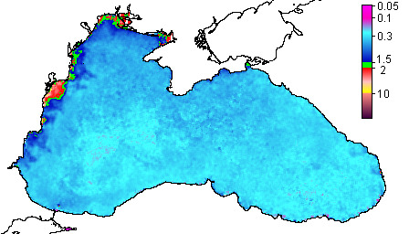 Colored Detrital Matter, aCDM(490),m^-1