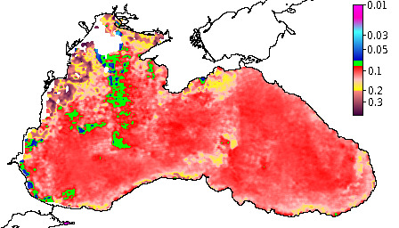 Colored Detrital Matter, aCDM(490),m^-1
