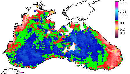Colored Detrital Matter, aCDM(490),m^-1