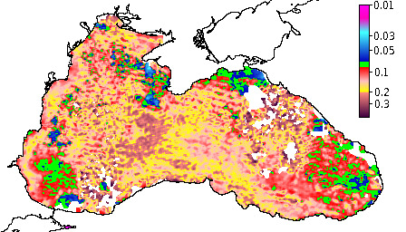 Colored Detrital Matter, aCDM(490),m^-1
