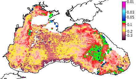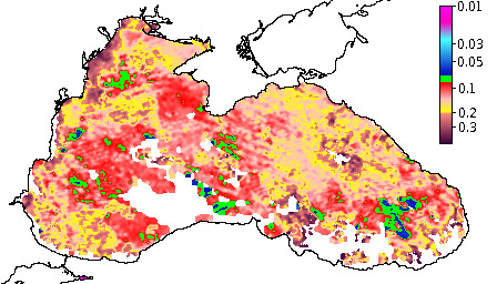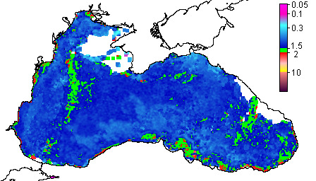 Colored Detrital Matter, aCDM(490),m^-1