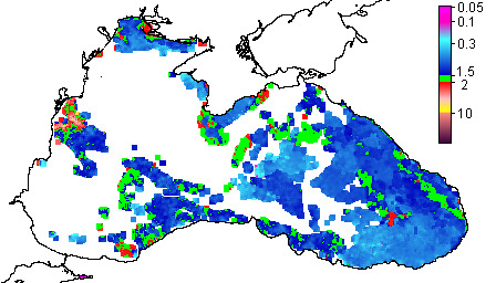 Colored Detrital Matter, aCDM(490),m^-1