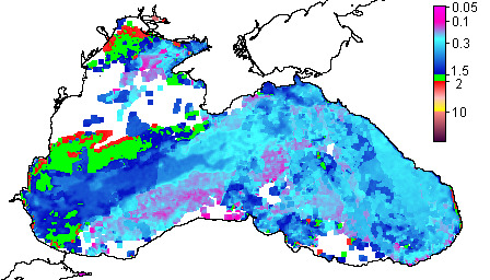 Colored Detrital Matter, aCDM(490),m^-1