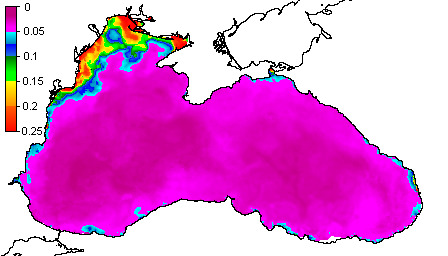 Colored Detrital Matter, aCDM(490),m^-1