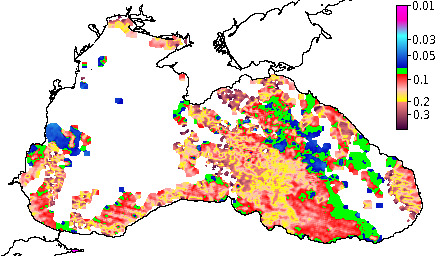 Colored Detrital Matter, aCDM(490),m^-1