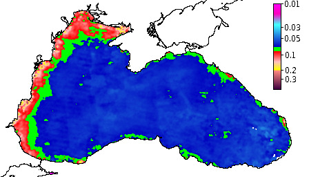 Colored Detrital Matter, aCDM(490),m^-1