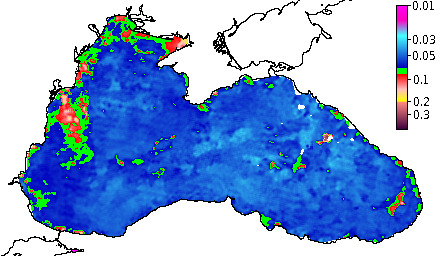 Colored Detrital Matter, aCDM(490),m^-1