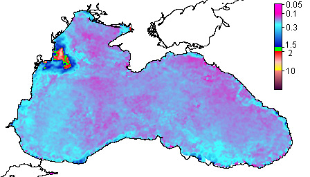 Colored Detrital Matter, aCDM(490),m^-1
