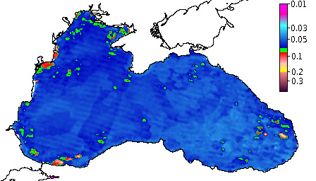 Colored Detrital Matter, aCDM(490),m^-1