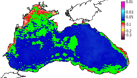 Colored Detrital Matter, aCDM(490),m^-1
