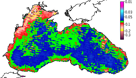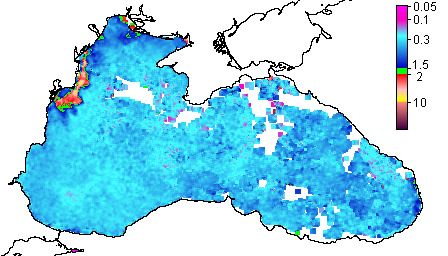 Colored Detrital Matter, aCDM(490),m^-1