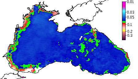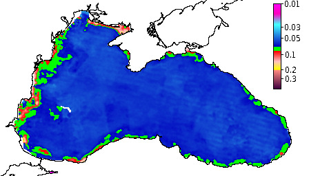 Colored Detrital Matter, aCDM(490),m^-1