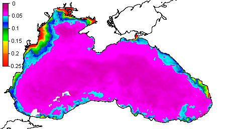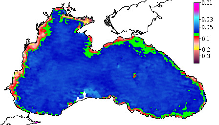 Colored Detrital Matter, aCDM(490),m^-1