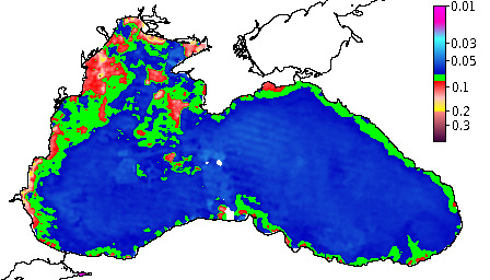 Colored Detrital Matter, aCDM(490),m^-1