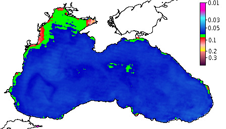 Colored Detrital Matter, aCDM(490),m^-1