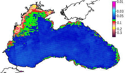 Colored Detrital Matter, aCDM(490),m^-1