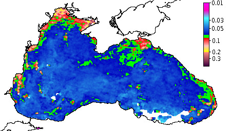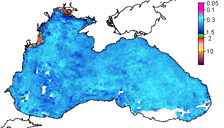 Colored Detrital Matter, aCDM(490),m^-1