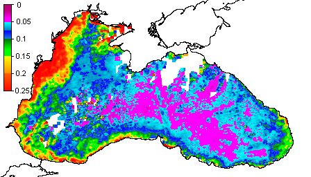Colored Detrital Matter, aCDM(490),m^-1
