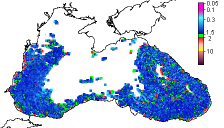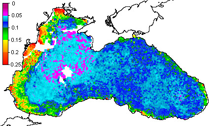 Colored Detrital Matter, aCDM(490),m^-1