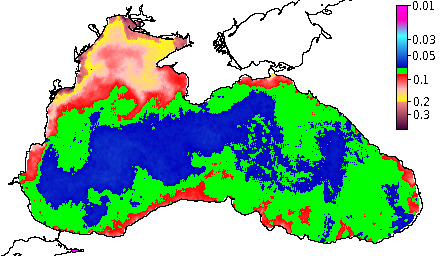 Colored Detrital Matter, aCDM(490),m^-1
