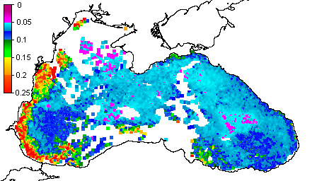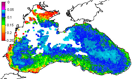 Colored Detrital Matter, aCDM(490),m^-1