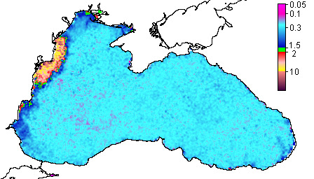 Colored Detrital Matter, aCDM(490),m^-1